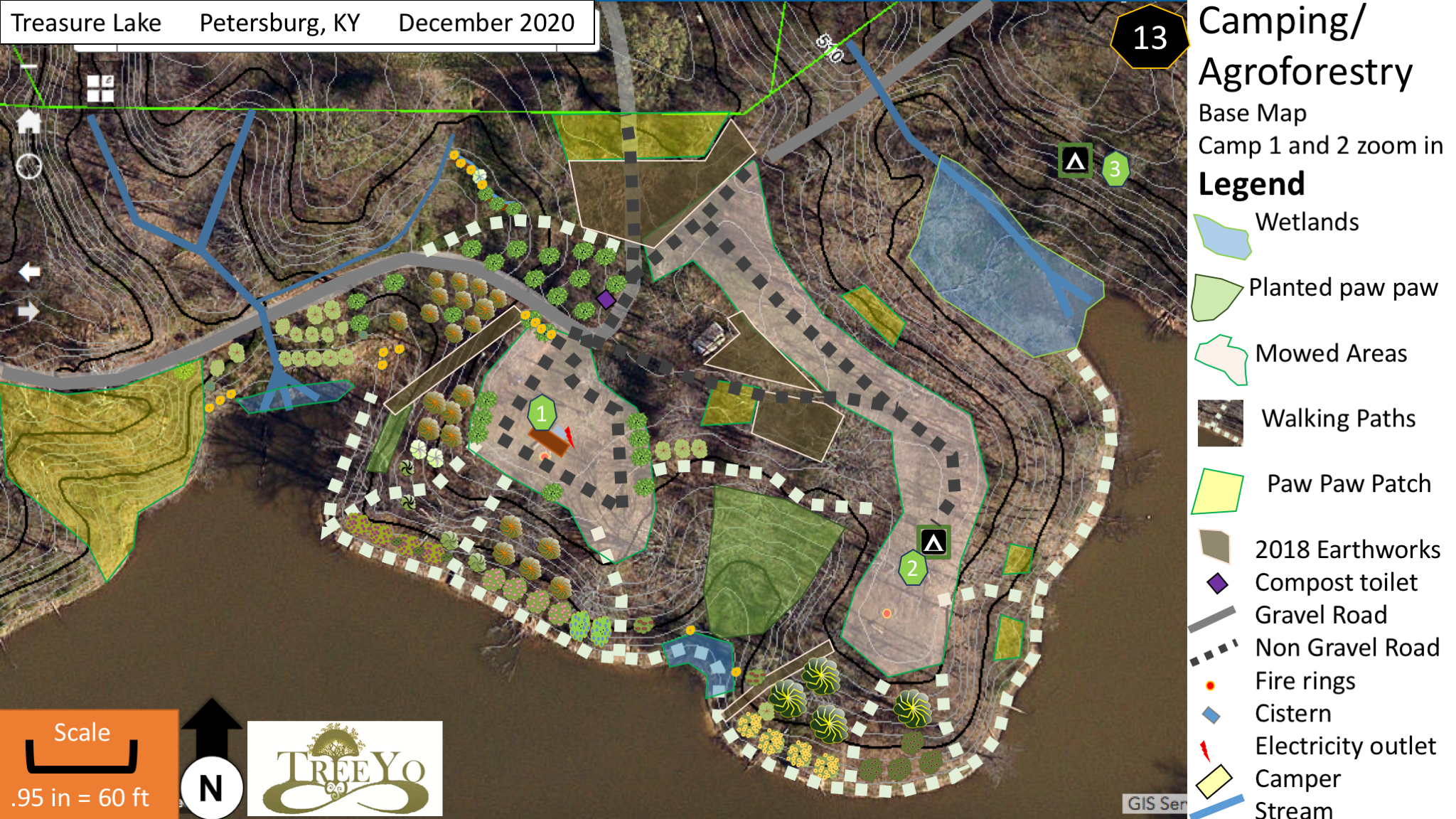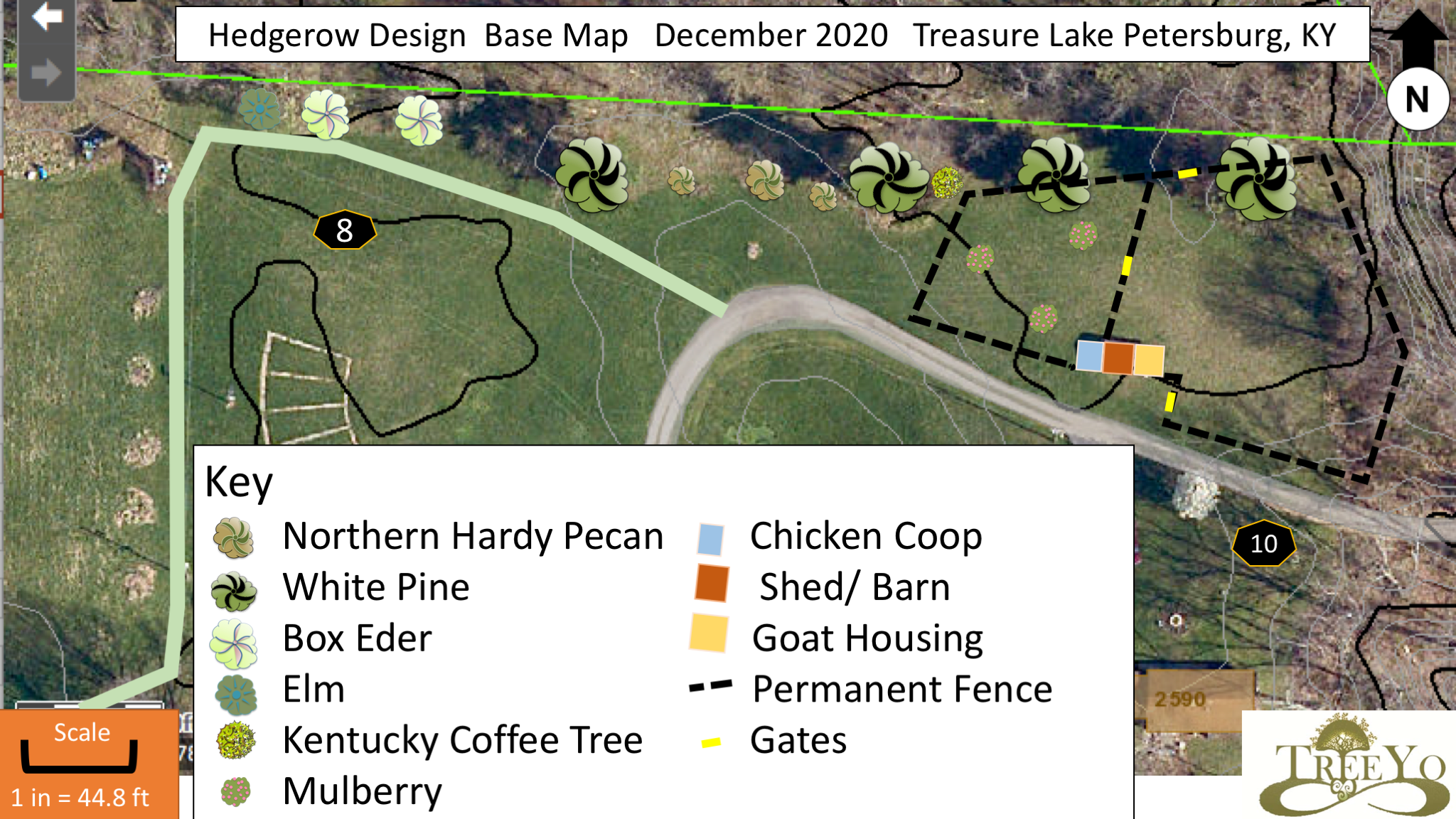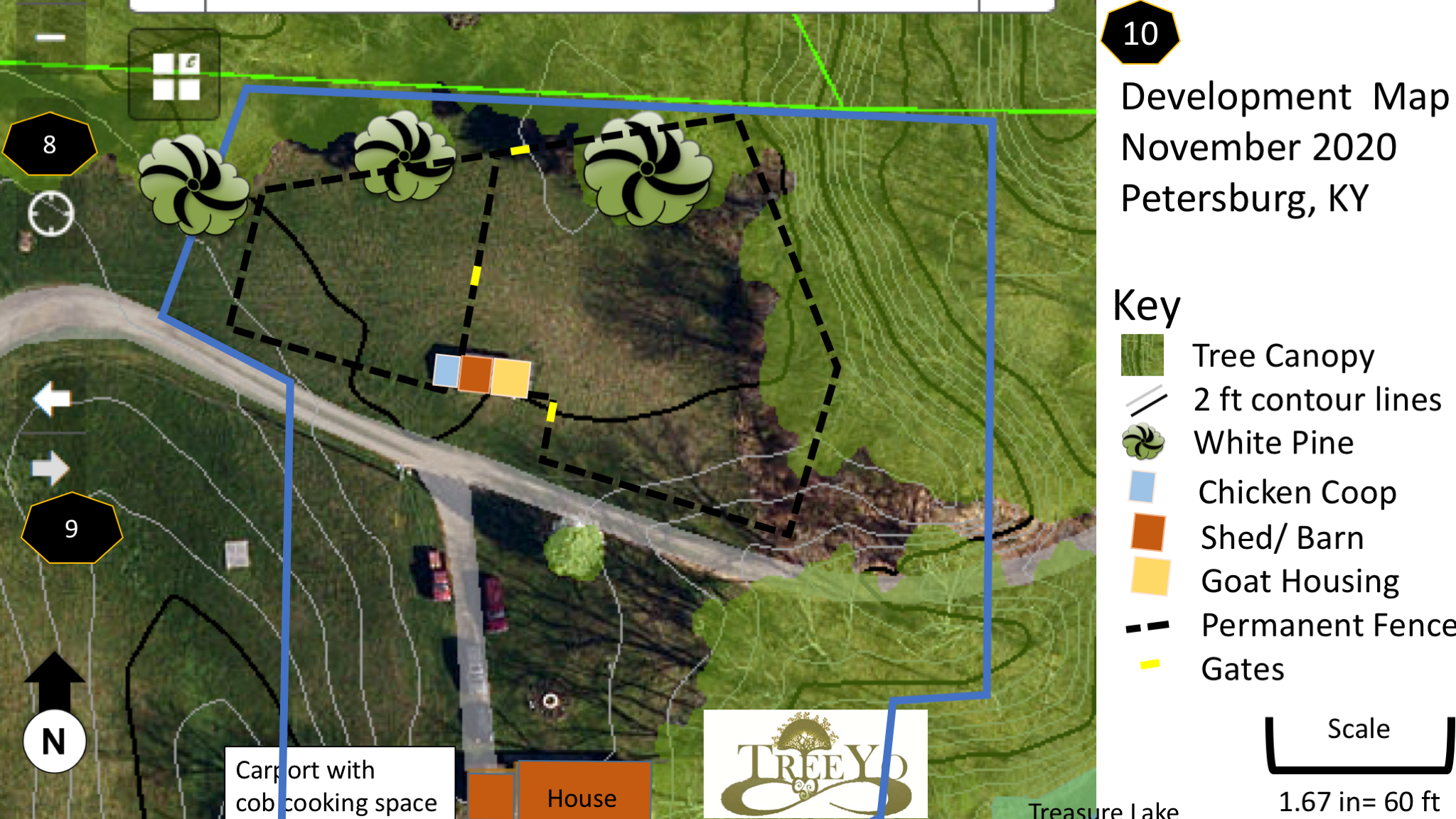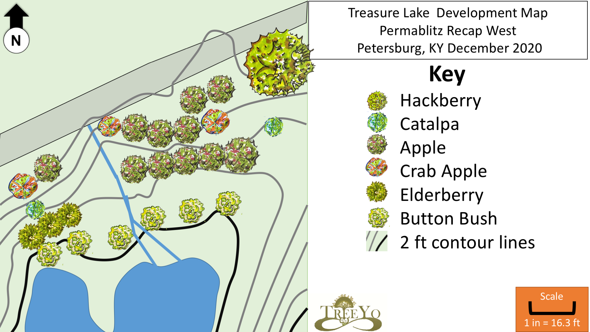 As I reflect upon this last year of tree planting through the design documentation that I love to do on these days that are cold and day length is short, I remember what was and what is. My yearning to plant trees is still strong, mostly limited by resources like time and money. Nonetheless, the desire to create pockets of biodiversity here at Treasure Lake is still there, scaled to fit these resource limitations and abundance in other ways. It has become quite obvious to me the speed and scale to take to ensure the trees that get planted this year will be able to be taken care of next year as well. That compounds over time as the yearly spring and fall plantings begin to add up over a 4 year period. Moreover on the pattern level, the where and how (earthworks) to plant just pops out in my daily walks and travels around the farm. Here on my families land I mainly work the edges through the develop nuclei and let them merge over time pattern of small scale intensive. Furthermore, my time constraints often come from caring for animals, which their manures from their housing is being directed partly to tree crops and plantings through deep mulching. Areas that I want to do broad acre tree crop plantings through alley cropping are now getting animal rotations thus helping to improve the soil before we ever make that intervention.