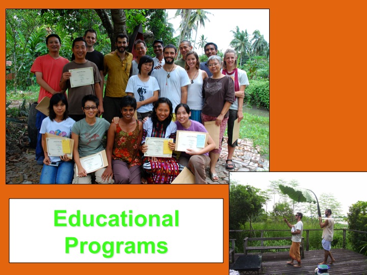 As the growing of crops traditionally and societal structures that encouraged cooperation were broken by colonialism and evolutionary pressures, the passing of environmental literacy from generation to generation was lost. Thus we need to reinstate holistic education and permaculture offers one form of education to enable the repair of how view the material world. Thus permaculture courses offer a economic infusion into the project and can have lasting positive affects in your community. In the graduation picture above, the first PDC ever in Malaysia that we taught in 2009, was an affordable course for locals which allowed the movement to kick start there. Some courses in the tropics are destination courses where outsiders who are destined to travel spend part of their travels doing a PDC or other courses. This is justifiable as well because either there, or in other locations, these people hopefully begin to practice permaculture as well. Along their travels they spread the word of permaculture and our workings with locals during our stay often helps improve their farming methods and community relations. I have taught a couple fo destination courses in teh tropics and i know my interaction with locals has been a great give and take relationship of knowledge and skills.