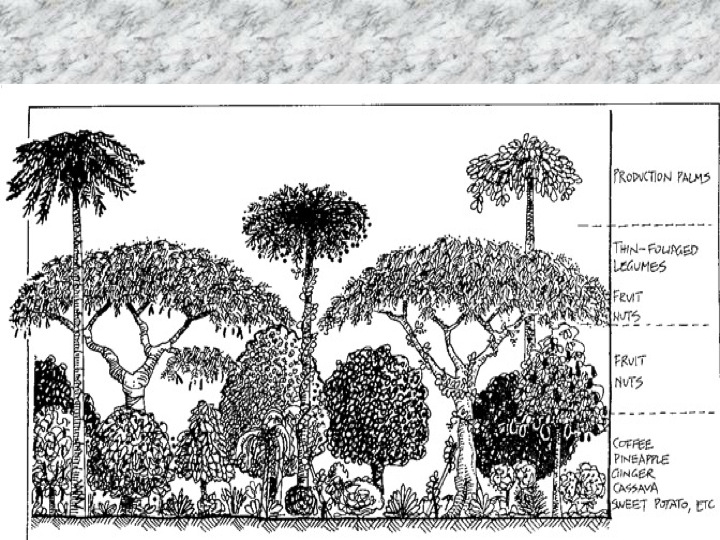 This picture is then manifested into the picture below that I lifted off the internet at some point. It shows the mimicking style of Permaculture. Understand your forest type and then reconstruct it with fibers and fuels, food and medicine, fodder and fertility. On the right below, in this dry tropical forest of Sri Lanka the forest is packed with all of these functions plus the ecosystem services of having a forest such as bird habitat and a more stable hydrological cycle.