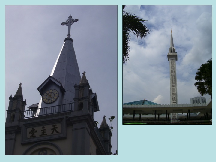 Below is a series of pictures that exemplifies another context of dispersal within the tropics. It shows religious integration from the tropical context of Malaysia/ Singapore that does form a unique melting pot.