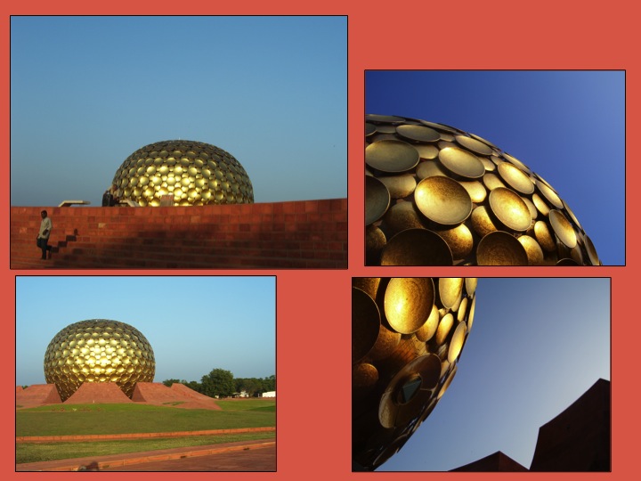 Also while in India I saw the influence of Westerners and Guru philosophy in Auroville, India. The picture below shows a temple for meditation. Quite ornate in its nature, the center acts as a gathering point and a radiating point for the unique ecovillage acknowledged by the UN.