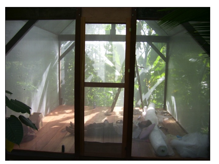 Biting insects can be a huge problem and spread disease like Malaria, Dengue Fever and in this case Leishmaniasis. It is a parasitic protozoa, flesh eating in its nature, that is spread via the smallest sand fly from infected humans or sloths. It goes through traditional mosquito net so at a project I visited in Panama in Bocas del Toro in 2005, a hut was built to see if the finest of all meshes could be used to keep the bug out. In the picture I was hiding out in the hut due to a foot infection that had me down and out. The medicines that they treat this with are quite toxic however a colleague was trying turmeric, ginger and garlic with early success.