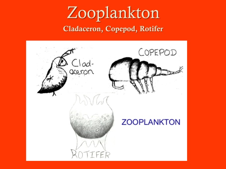 then are feed on by Zooplankton. Just as the cow is eaten by other predators such as mountain lions or humans, zooplankton form the main feed base for you fish. They are a high protein source and give the young fish the energy they need to put on growth quickly so they move out of danger size.
