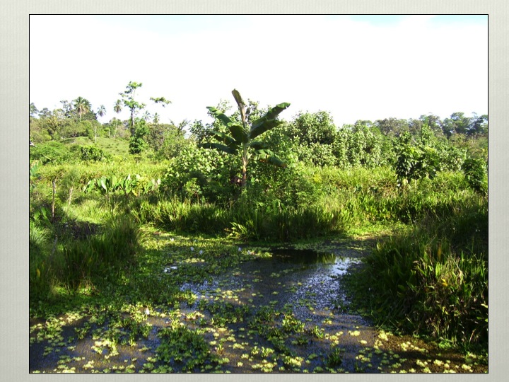 These plants are supported by terrestrial vegetation as well because no Permaculture aquaculture food web would be complete without beneficial interactions. Hence the aquatic system benefits the land and vice versa. The land based plants can provide food directly such as the leaves of cassava for tilapia or fringing grasses for carp, but also can be prepared into a homemade fish food. This comes from combining grain and fruits to make our own pellet feed.
