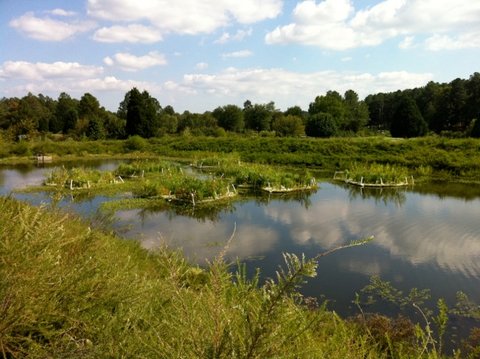 on the waters edge to land. They would layer that with the pond bottom muck or detritus as it is known scientifically. From there they could paddle around in boats and grow crops on these islands, which in time grew fertility. Vegetables knew no limit of water or fertility as it was easily gained from the soluble nutrients in the water with its access to the cycling of the compost pile like material of the lake bottom. Waters nutrients are creatively cycled inherently and were easily exploited due to edge creation and creative human interaction. These food growing systems allowed the natives to build complex cultures and some of the highest, if not the highest, population density at the time in the whole world. Although the Spanish did a number on the people population and the chinampa system itself as industrial agriculture developed, the chinampa system remains alive and continued on by a small group of locals and even some permaculturists are involved. In today’s modern world one is able to purchase something similar known as floating islands yet are made of synthetic materials. Although plastic, they are made in the thatch like pattern similar to what the indigenous of Lake Titicaca did for their floating islands. However this design comes from biomimicry with essentially the same materials and mold as an air filter in a machine. It has lots of edge to trap particulates when applied to machinery but when you make them bigger and put them in water the trapped particles of air create the buoyancy. These floating mats are covered in microorganisms which help to cleanse the water of pollutants and nutrients and give a planting space for wetlands plants and vegetables.
