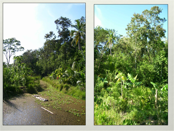When working in Costa Rica in 2005-06, I had the fortunate opportunity to see an amazing project in the islands of Bocas del Toro, Panama. After crossing the border, we quickly found ourselves on a boat weaving through incredible coastal habitat of mangroves and islands of aquatic vegetation acting as a buffer strip to the coast and creating lots habitat. It was easy to get inspiration from this natural habitat on our journey to the project Finca Luminescence on the island of Bastimentos. Upon arrival at the little coastal island, we were astonished at the amount of edge and biodiversity at the project. After a short walk through a coastal hamlet of indigenous people, you entered into the property and immediately controlled chaos was apparent. Water surrounded everywhere, layers of aquatic vegetation were abounding and the vegetation on land was also extremely layered and visibly still young. We heard bird calls, frog croaks, and even large creatures scurrying to enter the water. On a small ridge point you could overlook to the neighbors property and it was a classic low diversity, cattle pasture so famously implemented by the Spanish through draining of wetlands and sowing with invasive grasses.