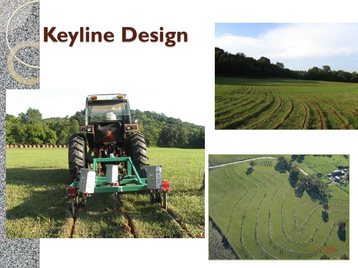 Keyline Design: great Broadacre application of using the a pattern in anture to maximize water runoff by forcing it to the ridges where it is allowed to infiltrate and hydrate landscapes extensively.