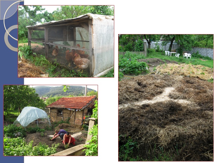 - Bring other dry weeds, brown material of leaves of straw to help balance carbon nitrogen ration and further prepare the bed for planting out. This will help bind the hi-nitrogen of the chicken manure to the hi-carbon and keep it from off-gassing and creating smells. It provides a much more hygienic atmosphere for the chickens and creates better conditions for organic material breakdown and the eventual growth of new plants. Having a thick layer of mulch also stimulates an instinctual behaviour to scratch.