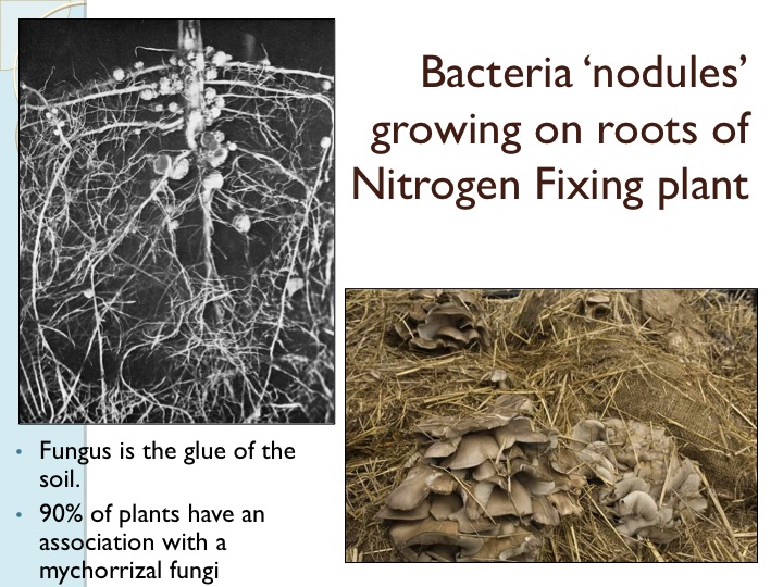 well as protein production. The chemical opposite is found in bags and in propane tanks pulled by tractors at the beginning of the corn season. This of course has a detrimental affect on the soil food web which is the long-term key to building the natural capital rich humus substance. Alternatively we can use varying heights of vegetation from the legume family like annuals such as beans, vines such as wisteria, shrubs such as Siberian pea shrub, or trees such as Black Locust to cycle this very important nutrient through the system. We do this through chopping and dropping the organic material which allows nitrogen to pass into the soil in various ways. The roots slump off in accordance to the vegetation being cut and the nitrogen rich leaves and branches are broken down and again through predator-prey relationships, the nitrogen is made available.
