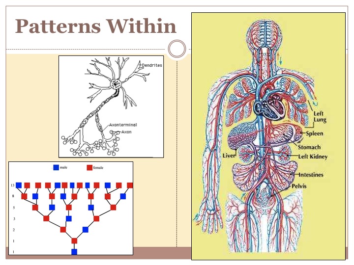 to decoding pools in our bodies like our brains and hearts so that our perception of our world around us in not just through one element. It fans out in dendrites and concentrates into main bodies, trunks and large rivers, and zips along to these concentration points. Similarly our river system of our body, the circulation system, is ingeniously created through this pattern. Studying that alone is a work of art that Da Vinci helped to bring forth and even the huge success of the museum exposition known as Bodies some years ago shows the allure of functional and natural patterns. When an artery gets blocked, this transference can no longer occur. This is analogous to the dams being built on Nile and locks and levy’s on the Mississippi. The result is a decline of ecosystems around and the cultures that depend on them. The Nile was dammed for irrigation for agriculture because we had lost our recognition of the significance of the patterns of nature through our dualistic and material based thinking. Now this once productive drylands area is now a desert mainly in the name of cheap clothing as cotton was the main production focus as the dams served as water storage for irrigation. If we realize these natural patterns were beset upon us for a reason, then we can enliven them and bring forth the abundance that nature inherently provides. Exponentially ecosystems can rebound which the Fibonacci sequence demonstrates. This sequence of sacred geometry is also tied to the dendritic pattern as populations build on a bell curve not on a linear model. The slide above with picture below left shows this and marks the ability for nature to move in exponential factors, both in decline and in regeneration depending on our approach.