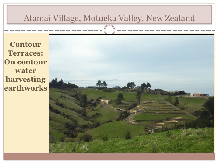 ecovillage that I took part in design work and extensive tree planting, these contour terraces work with the idea of the dendritic pattern but flip it. It is easy to see how regeneration occurs quickly in valleys in this picture because waters’ concentration there. However in sloping landscapes, ridges dominate the total area and need a focus on rehydration for regeneration. Thus we can use contour and the keyline pattern to redistribute the surplus water back out to the ridge part of the landscape and accelerate succession and evolution of regeneration landscape wide. Through this application we can reverse the half hydrological cycle and the flood and drought syndrome that follows closely behind it and its cascading degenerative effects. It is through pattern application that we can solve so many of the worlds problems as natures workings can guide us towards abundance.