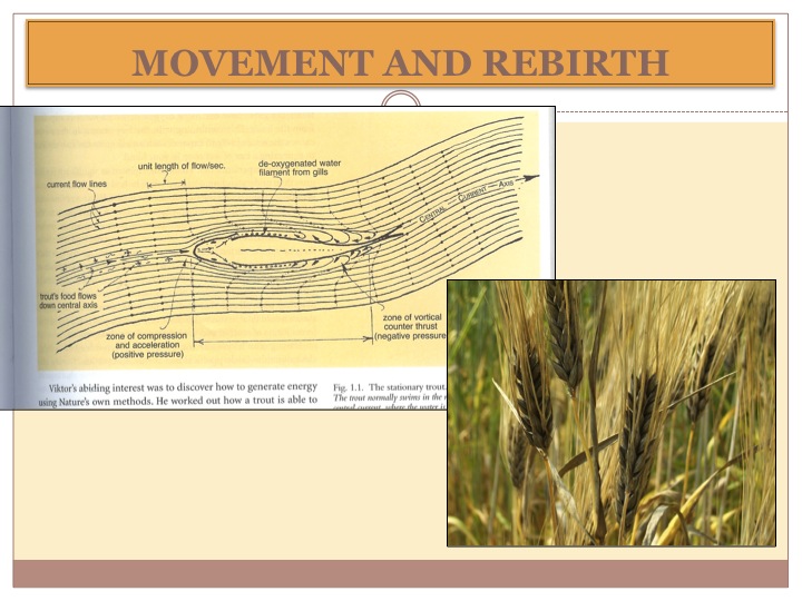 Another form of that shape, elongated, is the shape of the trout which also represents how evolution formed efficiency. Inspired by the work of Victor Schauberger, the above graph from Callum Coats shows the shape of a trout and its interaction with water. Trout feed facing upstream in mountain torrents which theoretically should require vast amounts of energy expulsion to hold their position for their precise hunting. With this shape, water hits the front edge of the trout and like other objects in waters path, it causes it to spin back on itself. With correct proportions delineated by the golden ratio, the water hits the snout and spins inwardly with the flow. This squeezes the trout in feeding position and maintains its position in the stream with a mere flick of the tail. If you look at a trout from the side, from above, and from in front it is all egg shapes, all combining an incredibly energy-efficient fractal.