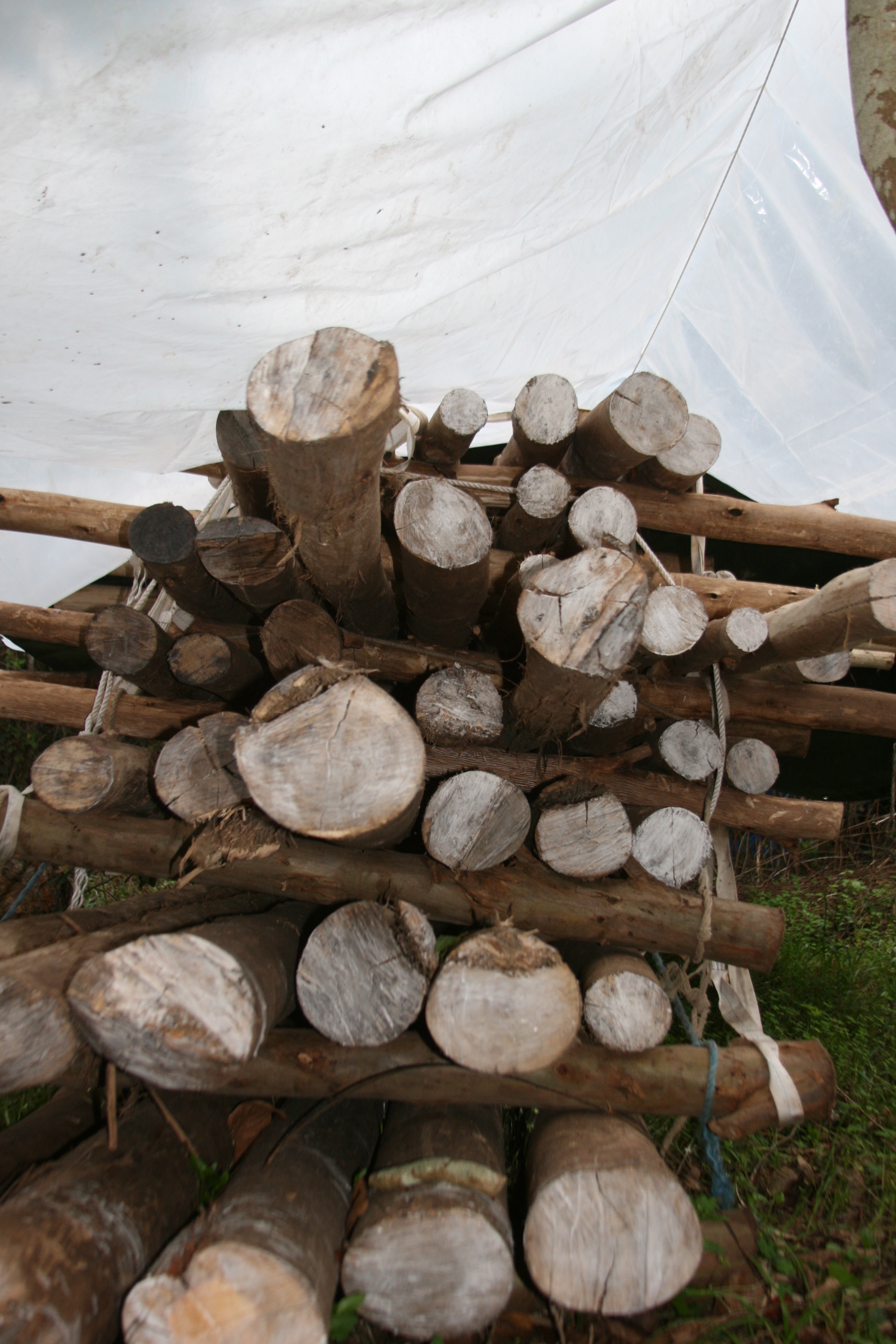 Roundwood construction was more popular when the building technique of timber framing was a more common practice. This technique allowed for the strength of roundwood to come through and the ingenuity of the craftsman to tie it all together with joinery (no nails and screws). Roundwood timbers from my families land back in Kentucky for