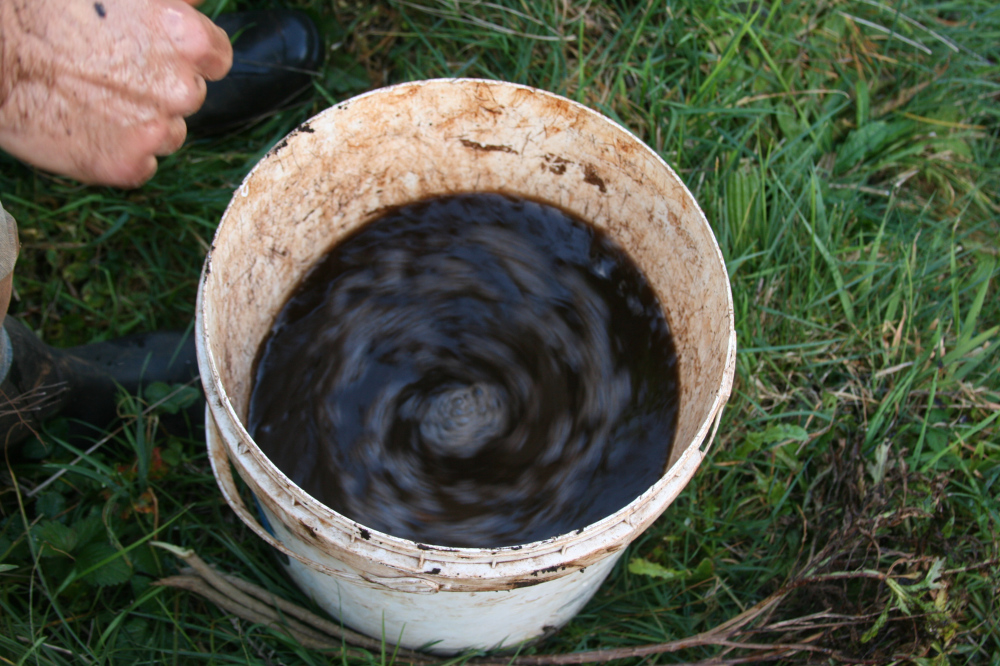 Once a brew or extraction is complete, its timely application is something to be considered stringently. First it should be used relatively immediately but within 24 hours as it can go anaerobic quite quickly and then be a waste of resources or you end up spraying the microbes out that you don’t want to be present. For application, the simplest hand methods of say a 5 gallon (20 L) brew is merely distributed by dunking a bundle of branches or leaves into the bucket and flinging it outwardly. It comes out in a spiral fashion and quite beautiful and meditative. Often backpack sprayers are used and in commercial application equipment that is normally used for pesticide spraying can be utilized. New equipment or those that are well cleaned from these substances are advised. An important thing to consider with application is the size of the nozzle for application. If too small the application will kill the microbes as they are forced out under pressure. To alleviate that always use a 200 micrometers in width nozzle. Thus you may need to retrofit those on past spraying elements.