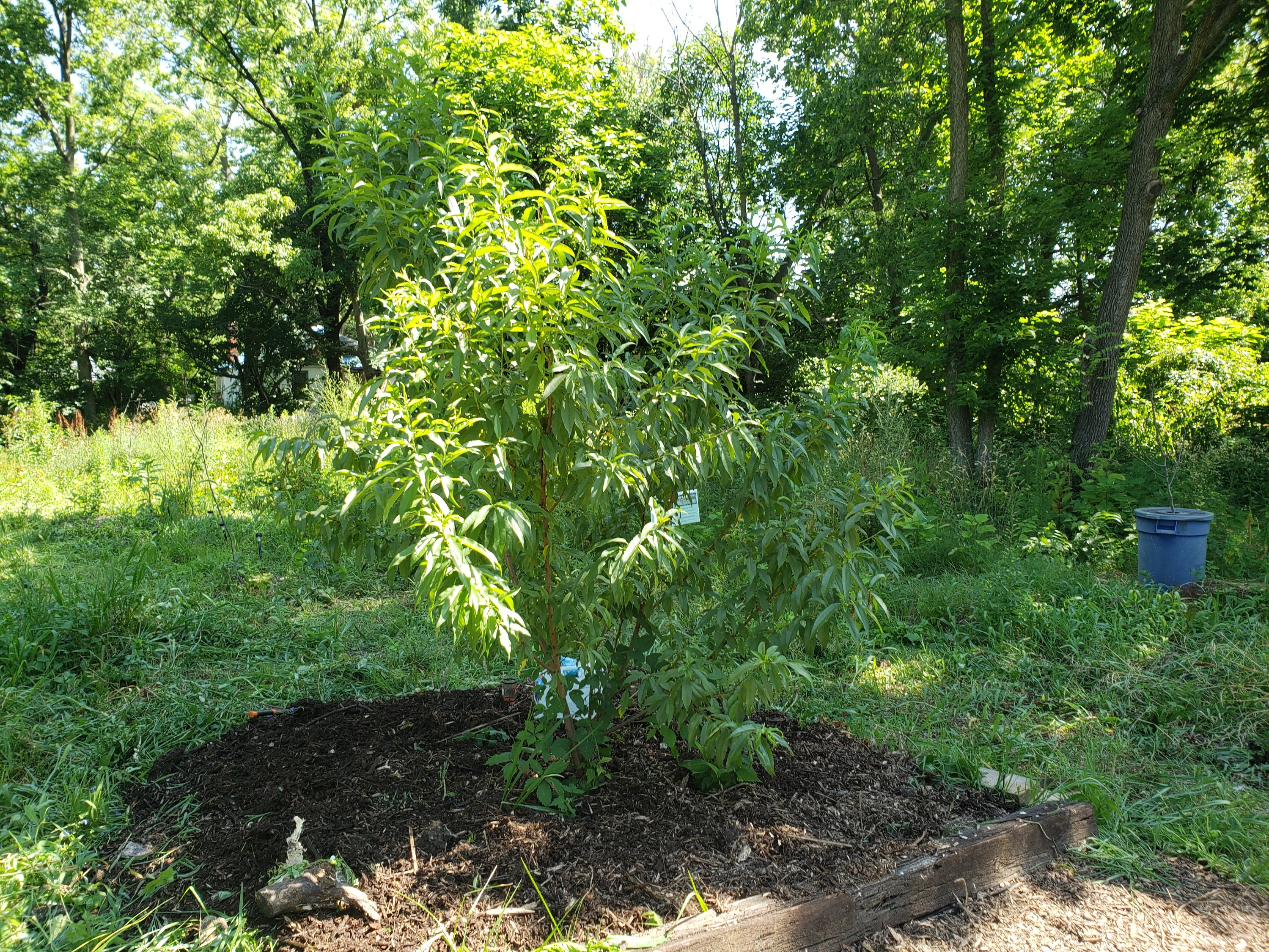 Here on a 60 acre property, it is hard to not say that nearly all of it is actually a food forest. The amount of foraged foods harvested this year probably outweighs my cultivated gardens and trees. But the cultivated stuff is young, there was a late frost, and the semi cultivation of the forest for over 20 years now does make it an easier statement and easier harvests. Nonetheless each year we build off of existing edges and existing plantings while building out new spaces. For example the back hedgerow got a little longer and thicker and a new banks development was created thus extending that edge. So each year that we are here, we will continue to manage what is here, plant more, and envision what is next. I try and operate with the mantra of don’t start planting until most of the stuff you planted before is well taken care of. Sometimes you do it concurrently because of the weather and spaces. Furthermore, I have lost too much stuff in the past to not take care of stuff properly, especially when I do have a mountain of woodchips and now heaps of manures.