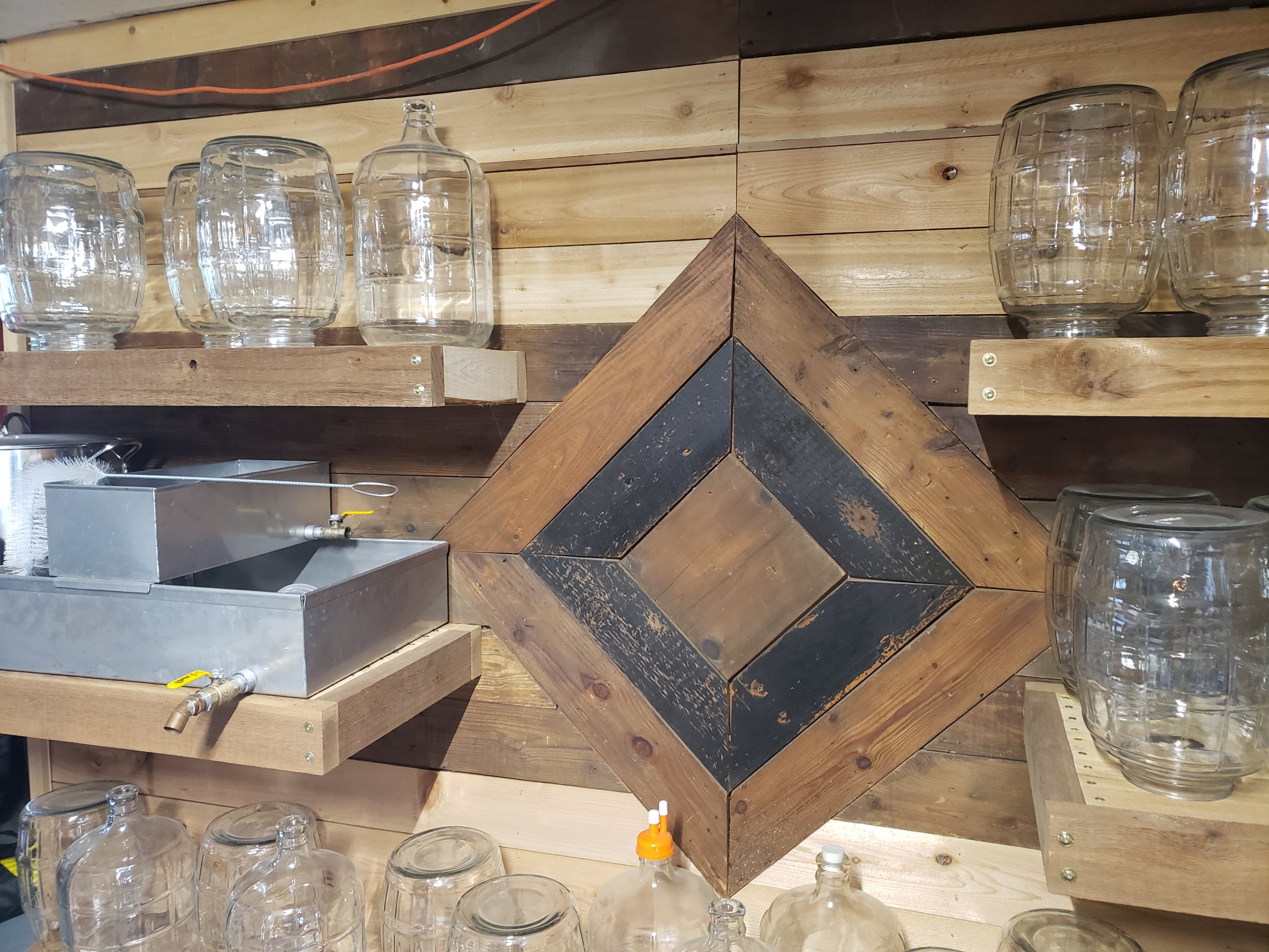 It once was a bar, but now it no longer is. This 3000 sq foot building is a huge asset, also sometimes called the big house, since we live in the tiny house but only cook breakfast there. It is a space that continues to evolve to keep pace with dynamic community development and on farm needs. With all this maple equipment invested in we had some shelves put in to hold it all. Behind a panel wall we found the old ship lap diamond pattern and built around that for a cool feature. Lighting in the building was upgraded, more shelving here and there for books and animal feed. Zone 0 is an important part of the design and here at Treasure Lake we have multiple of them.