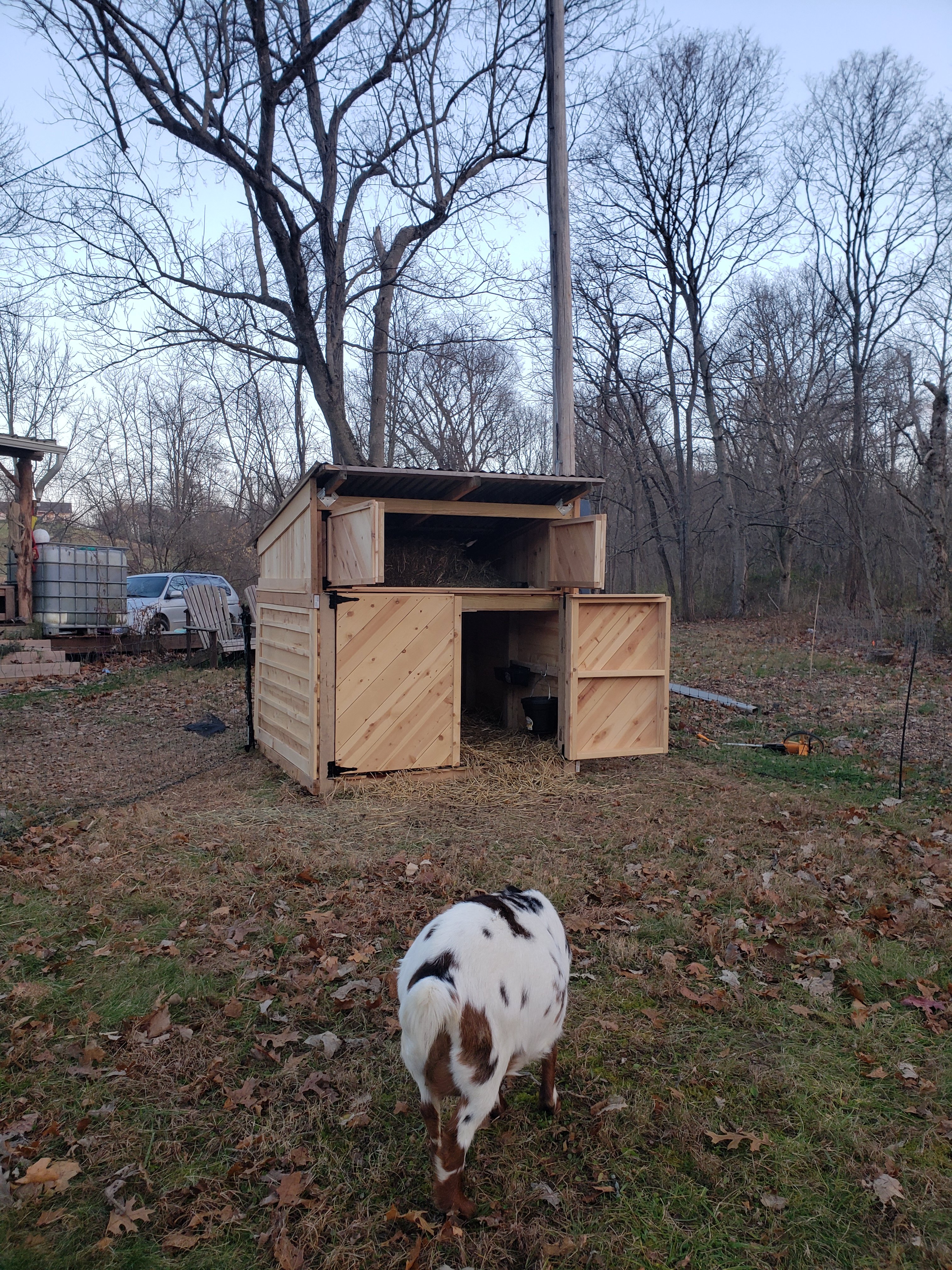 - Winter housing built for our very pregnant dairy goat, Zelda